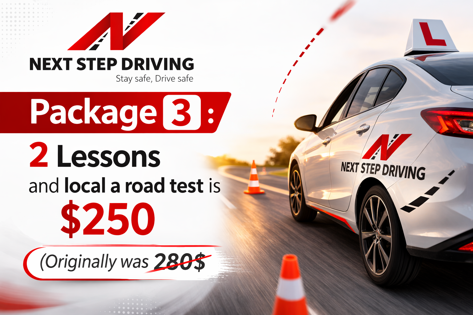 Each additional car driving lesson is $45. Prices are only for students in Scarborough and Pickering area. For driving test at other places, please contact us at 4377723344. you can also find us on Facebook page and google, search for next step driving.