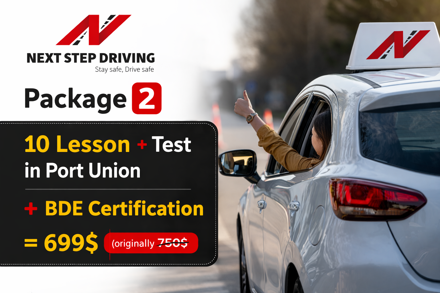 Package 2: 10 lesson + test in Port Union + BDE certification = 699 (originally was 750$)